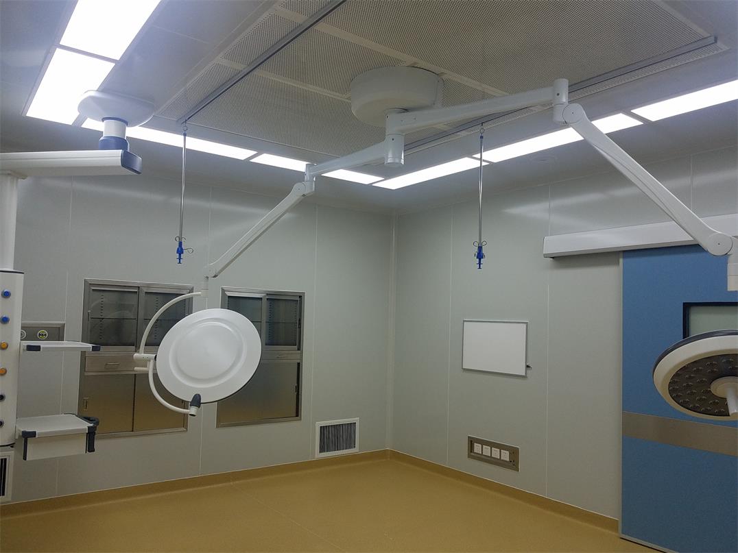 正負壓切換手術室性質決定該手術室要配置兩套大小風量排風系統。小風量排風系統為了排除一部分較輕的麻醉氣體和室內污濁空氣,設上部排風口,位置在患者頭側的頂部,這是手術室為正壓時的排風口設置。手術室為負壓時,兩排風系統同時開啟,患者為傳染病傳染源,應盡量使經過患者的空氣在下風側,以最短的距離排走,以免醫生受到感染,從這點考慮,大風量排風系統的排風口應設置在下部,送風天花送出的風遇地面后會有向上20cm~50cm的折射,所以排風口最好設在高度為20cm~50cm、手術室長邊靠近患者頭側位置。