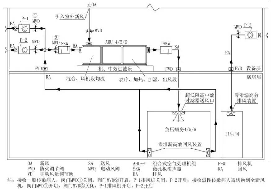 4)1,2,3號負壓病房采用自取新風形式,且可切換為全新風供給,以滿足烈性傳染病人治療與隔離需要。