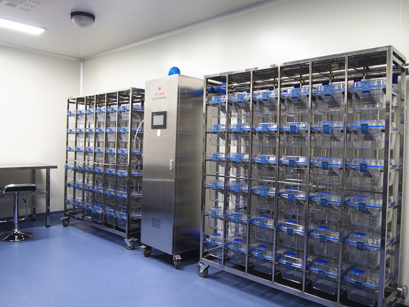 (3)隔離環境:該環境設施采用無菌隔離裝置以保存無菌或無外來污染動物。隔離裝置內得的空氣、飼料、水、墊料和設備均為無菌,動物和物料的動態傳遞須經特殊的傳遞系統,該系統技能保證與環境的絕對隔離,又能滿足轉運動物時保持內環境一致。該環境設施適用于飼育無特定病原體(SPF)、悉生(GN)及無菌(GF)實驗動物。